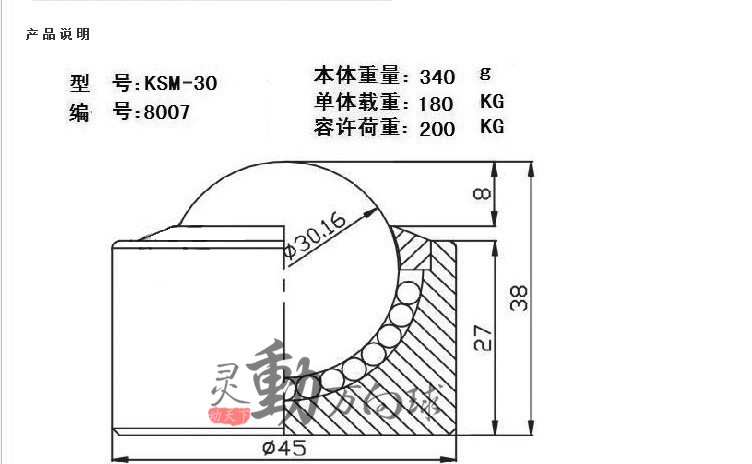 KS可吸震内附弹簧/弹片万向球系列